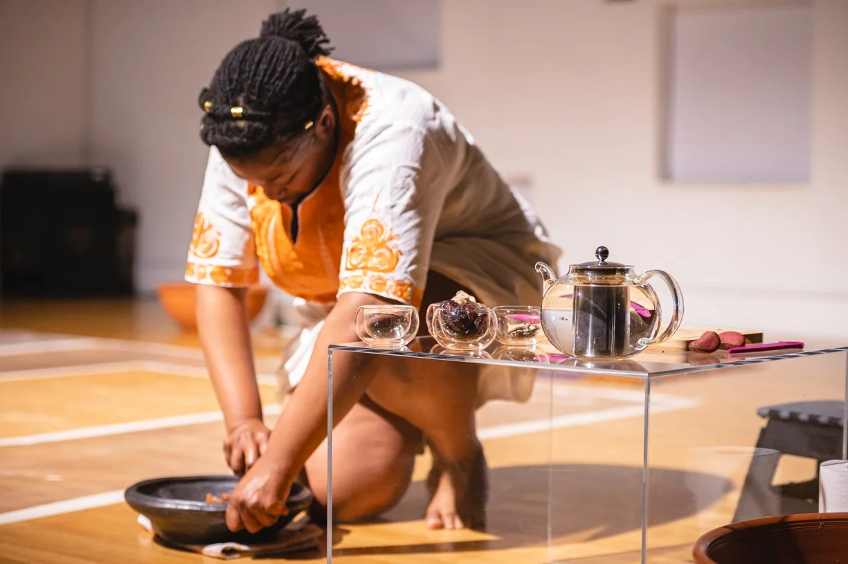 Held in the bosom of the home, within an altar of kola nuts, tea, dye, and fabric, this performance explores ancestral rituals that aligned us with the pulse of our planet and honoured the sacred within the mundane. To honour those that have come before us, preserve their wisdom and pave new paths for the future, this performance is a call for us all to rest.